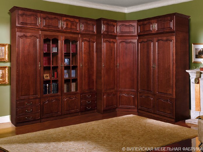Программа мебели Кентавр. Фасад из массива дуба. Корпус шпонированная ДСП. Большой выбор элементов. Красители пмп, дв.Срок выполнения заказа 45 дней. Купить в Москве. Производитель ЗАО Молодечномебель.Беларусь, Вилейская мебельная фабрика.