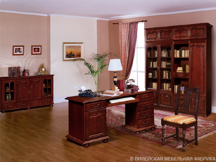 Модульная программаКентавр для кабинета, библиотеки. Фасад из массива дуба. Корпус шпонированная ДСП. Большой выбор элементов. Красители пмп, дв.Срок выполнения заказа 45 дней. Купить в Москве. Производитель ЗАО Молодечномебель.Беларусь, Вилейская мебельная фабрика.