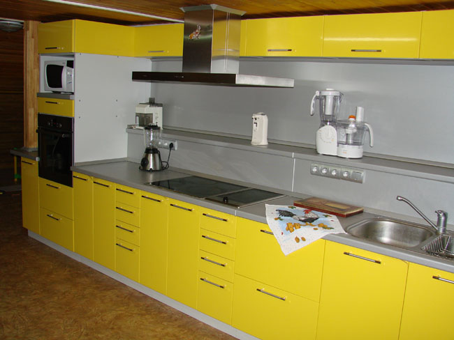 Эмаль на фасаде - результат современной технологии создания прочного и стойкого покрытия. Эта кухня, благодаря удачному сочетанию эмалевого покрытия с алюминиевыми панелями и матированным стеклом, может прекрасно сочетаться с новыми, актуальными сейчас линиями встраиваемой техники, чей дизайн базируется на алюминии. Предлагается более 300 вариантов цветового решения по каталогам «RAL»
